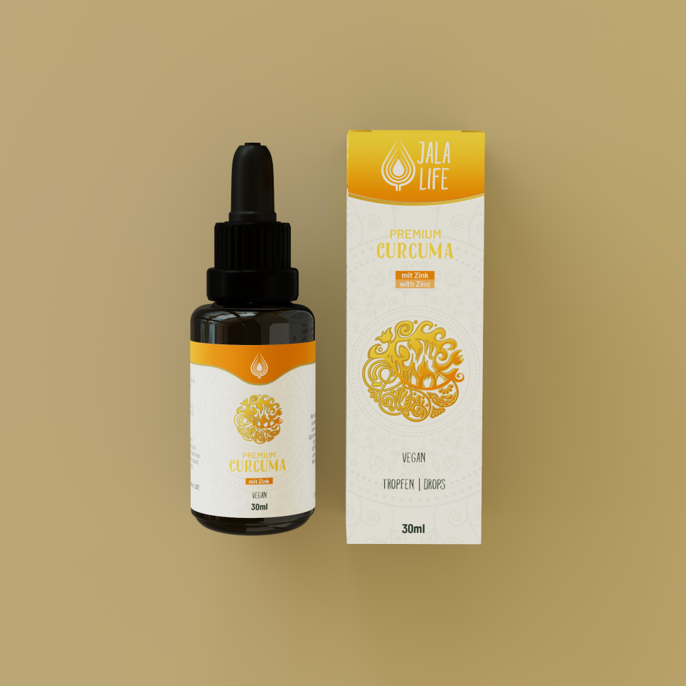By means of our purely herbal formulation, the high-quality curcuma extract is fully dissolved in water. Due to this formulation, the plant extracts dissolved in water can be optimally distributed in the small intestine (mucus layer). This allows all the active ingredients contained in the extract to be transported quickly and efficiently into the systemic bloodstream. Jala-Life does not require any questionable excipients and bioenhancers (substances that increase the bioavailability of active ingredients) such as polysorbates or piperine.